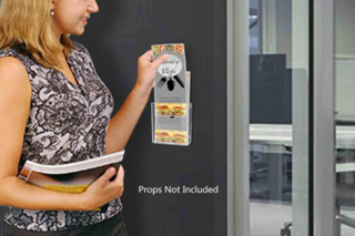 - The brochure holder features a clear see-through pocket that offers a full view of your printed advertisements or media. It also allows easy access for pamphlet removal and comes with strong magnets for simple installation on smooth, metal surfaces. This holder is a great addition in high-traffic areas where you want to display and provide your promotional literature for the taking. *All sizes are approximate.
