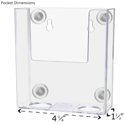 - Holds 4”W literature. Pocket Dimensions: 4.25″W x 1.5″D x 4.75″H. Overall Dimensions: 4.5″W x 1.75″D x 5″H. Great indoor non-permanent advertising tool for metal surfaces. Clear single pocket holder with magnets for trifold brochures, pamphlets or takeout menus. Proudly made with premium high quality materials. Marketing Holders literature holder with magnets provides a simple and durable yet effective display for promotional literature, pamphlets, brochures, flyers and takeout menus.